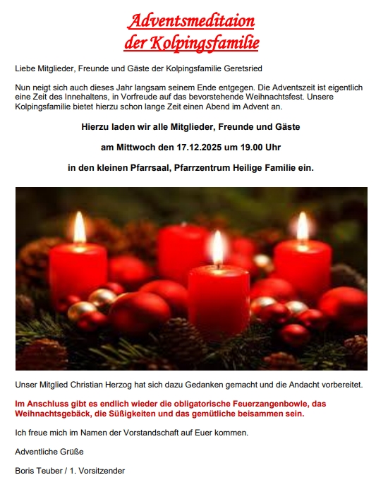 Adventsmeditation AktuellesVeranstaltungen und Gottesdienste Regelmäßige Gottesdienste Gottesdienstanzeiger Pfarrbrief “WIR Gemeinsam”