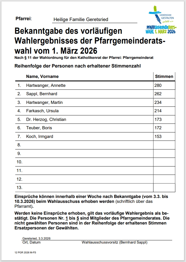 Georg Huber 241 Stimmen,