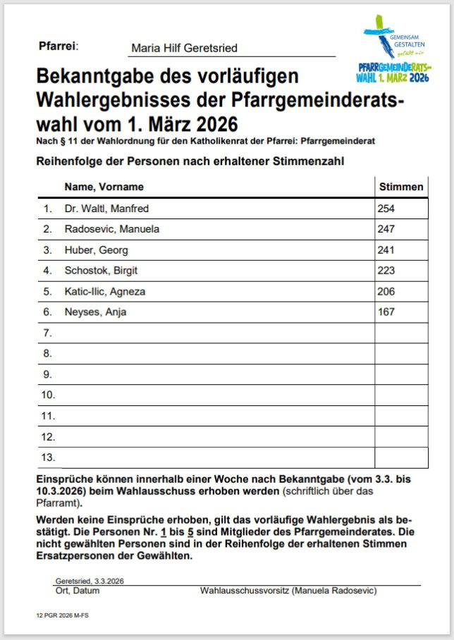 Stimmabgabe in der Pfarrei Maria Hilf: